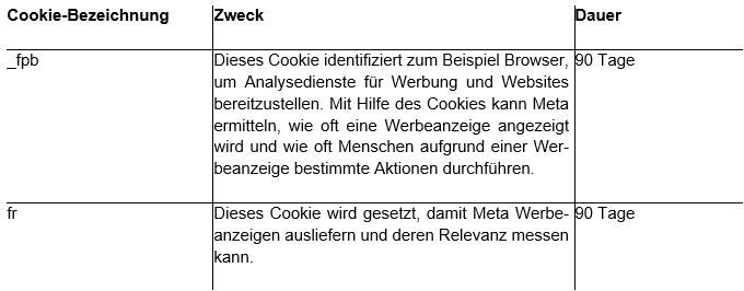 Insbesondere folgende Cookies werden von Meta im Rahmen von Meta-Pixel gesetzt: