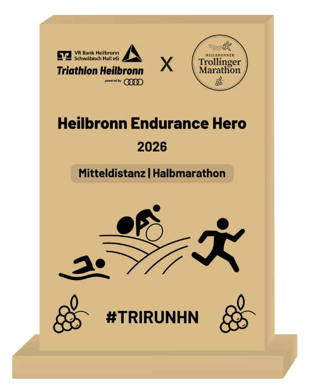 Bei der diesjährigen Premiere der Kombiwertung sind die Mitteldistanz beim VR Bank Triathlon Heilbronn powered by Audi und den Halbmarathon beim Trollinger Marathon zu absolvieren. Für die Wertung werden einfach die Zeiten der beiden Wettkämpfe addiert, die schnellste Gesamtzeit gewinnt!