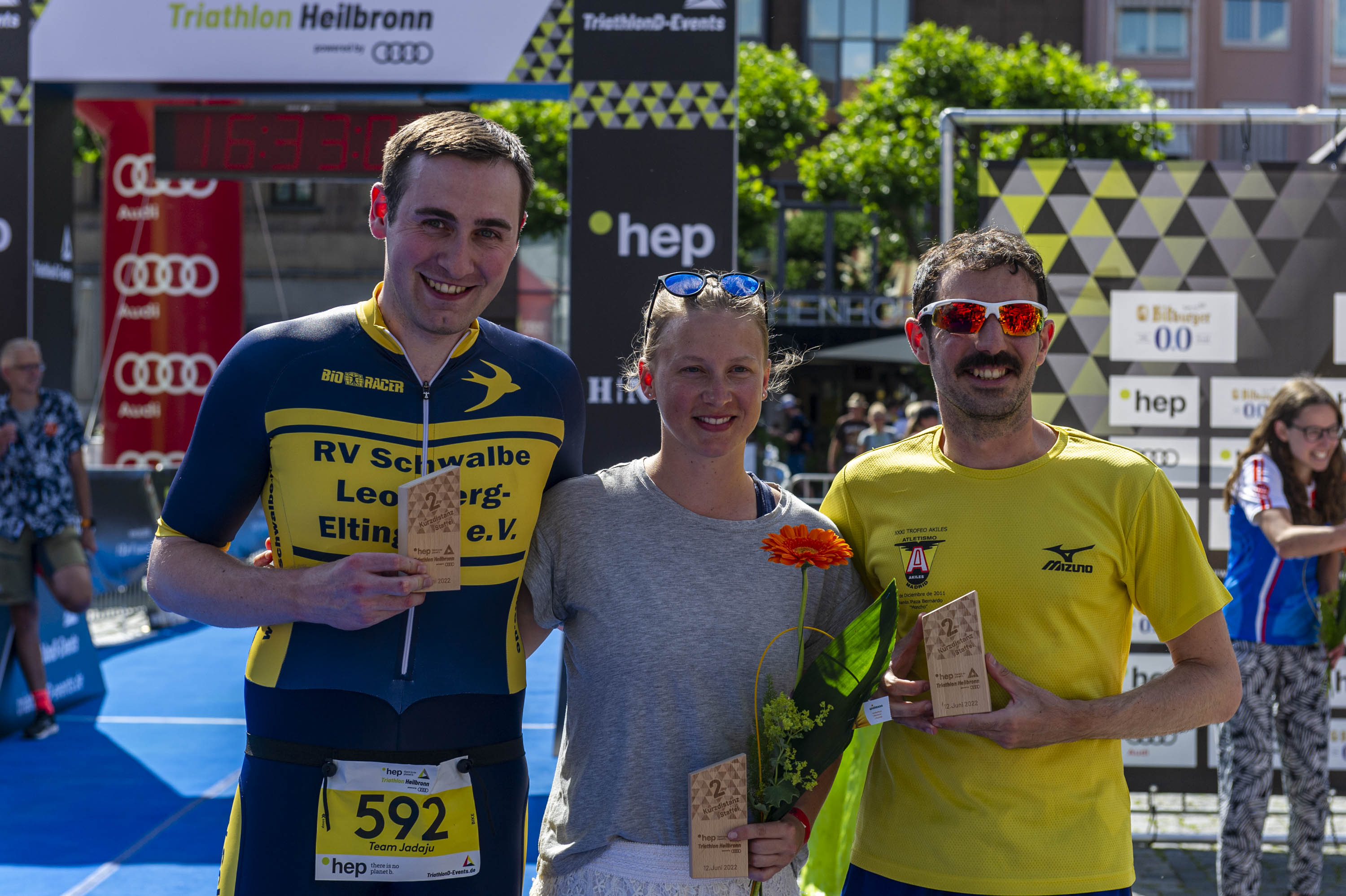 Ein Staffelstart ist beim VR Bank Triathlon Heilbronn powered by Audi über die Sprintdistanz (750 Meter Schwimmen, 22 Kilometer Radfahren, 5 Kilometer Laufen) und über die Kurzdistanz (1,5 Kilometer Schwimmen, 45 Kilometer Radfahren, 10,5 Kilometer Laufen) und über die Mitteldistanz (1,9 Kilometer Schwimmen, 83 Kilometer Radfahren, 21,6 Kilometer Laufen) möglich.